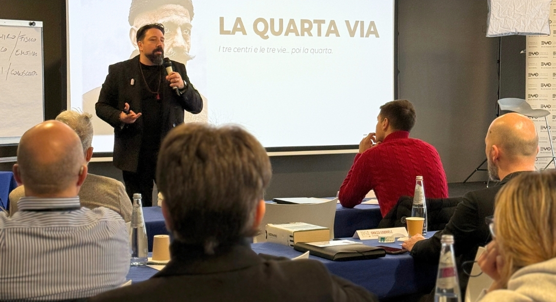 Partendo dagli insegnamenti di Gurdjieff, la lezione ha approfondito il concetto di Quarta Via, intesa come sintesi tra corpo, emozioni e mente nella vita quotidiana. Un approccio che non separa crescita interiore e business, ma li mette in relazione diretta.